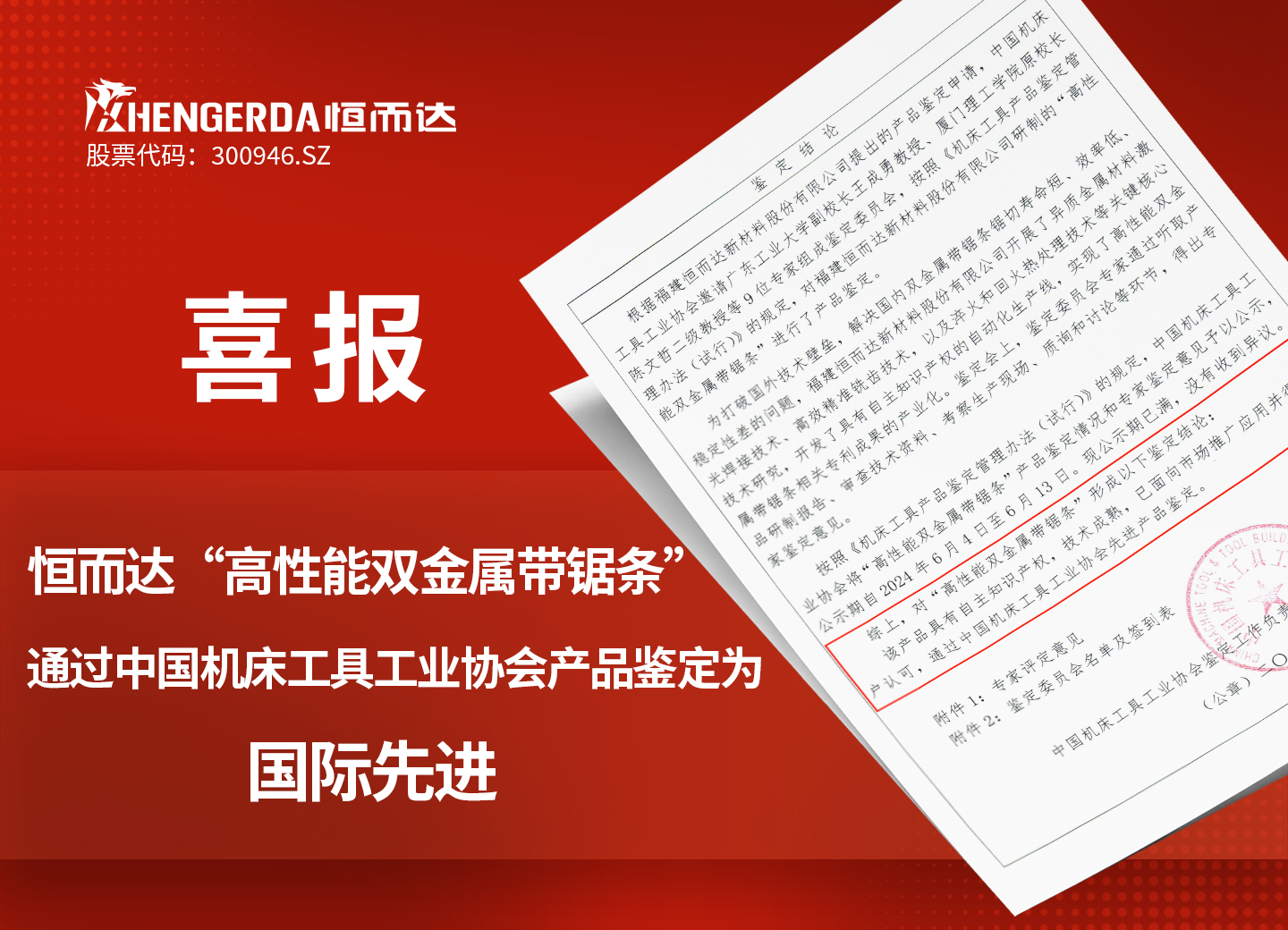 2024年6月18日,喜讯传来,ag真人平台官方“高性能双金属带锯条”产品顺利通过中国机床工具工业协会先进产品鉴定公示,鉴定委员会认为该产品具有自主知识产权,总体技术水平达到国际先进水平。
