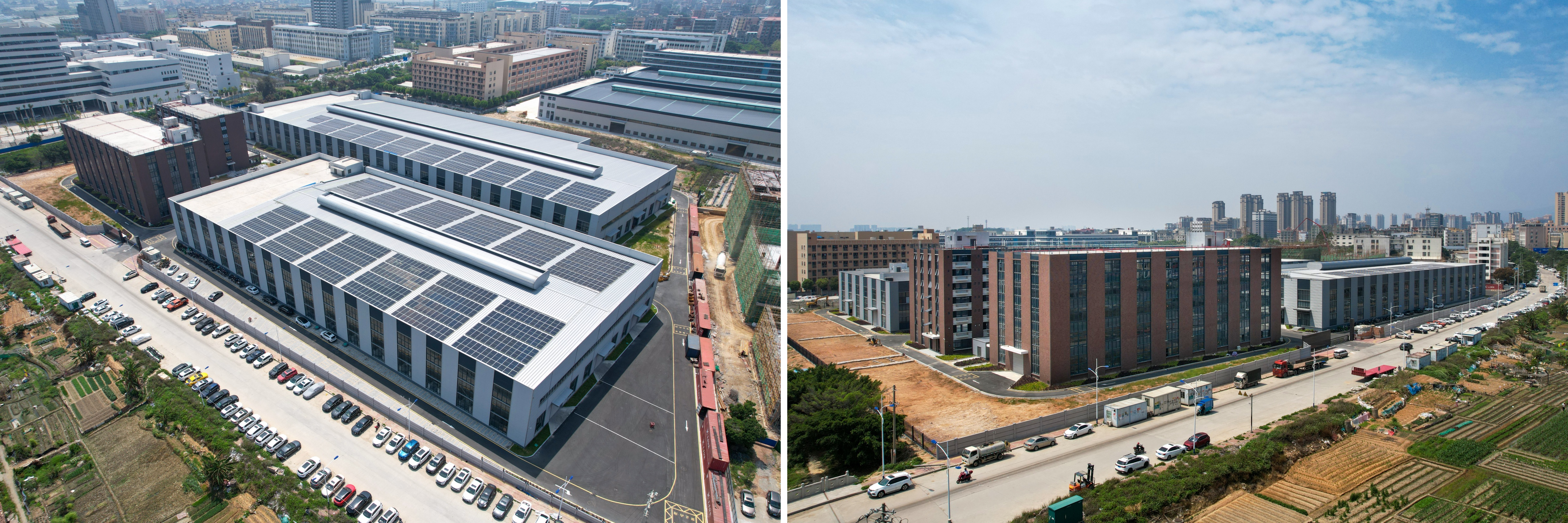 和平厂区占地面积约 63 亩,建设厂房、仓库及配套设施,总建筑面积40137.98平方米,主要生产各类高精度高端智能数控装备,其规划充分融合现代工业设计理念与绿色可持续发展需求。新建智能化厂房配备自动化传送带及CNC周转区,满足多品类、柔性化的智能制造需求;并根据功能需求进行了装配区域和仓储区域的独立划分,实现了从生产到装箱的一体化闭环。厂区屋顶配套建设了光伏发电系统向企业提供绿色能源,厂区周边配套生态绿化带与隔音屏障,实现工业与自然的和谐共生。新时代的数字技术和岁月沉淀的工艺经验共同协作优化生产流程,创新与传承的交汇构成了企业最深厚的进化动力。