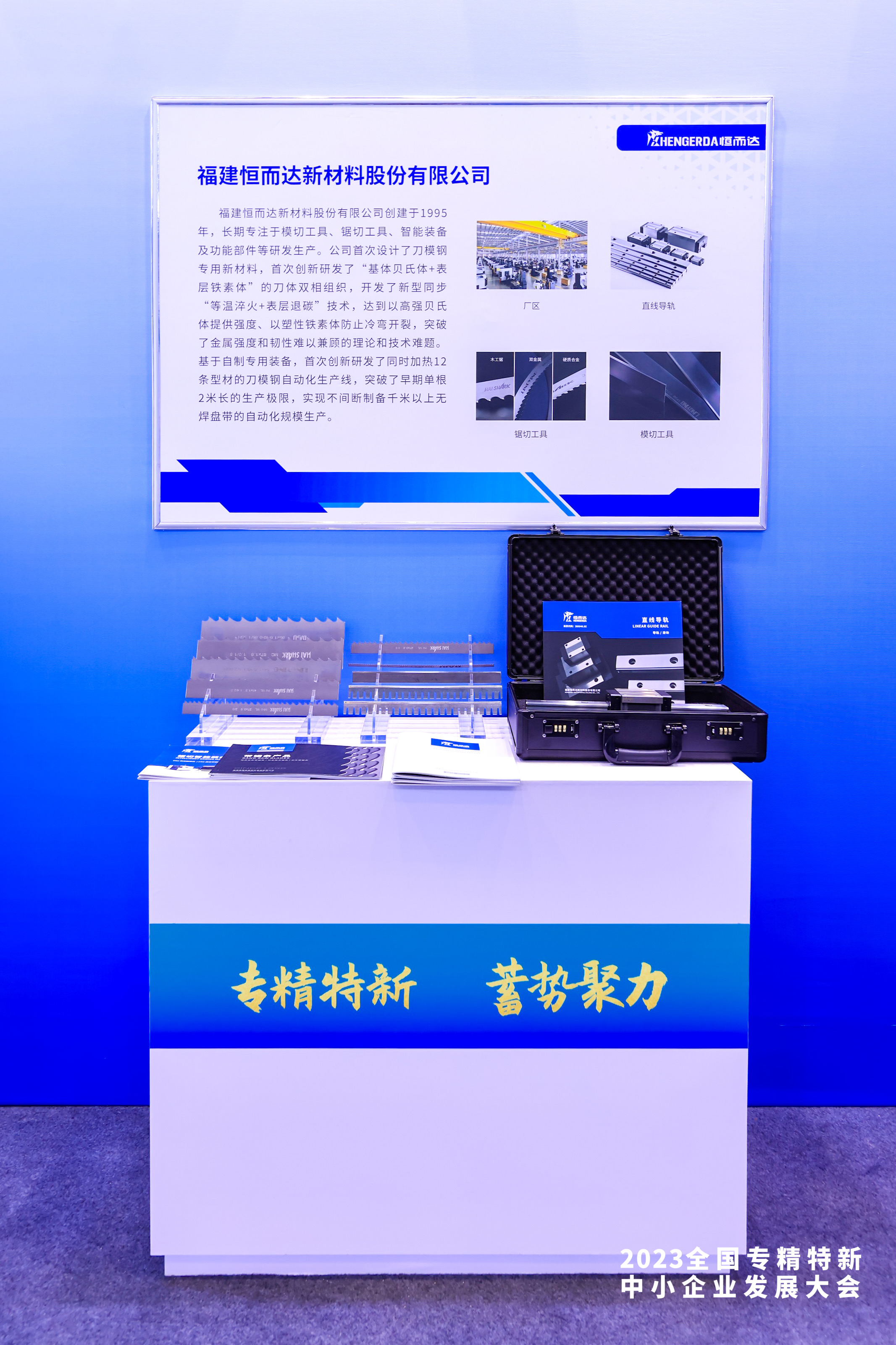 本次大会,对各部门、各地方专精特新中小企业相关政策及专精特新“小巨人”企业产品成果进行了展示。作为本次参会的福建省工业母机领域企业代表,ag真人平台官方以“图文+实物”的方式,重点展示自主研发的高端装备核心工作部件(金属切削工具)、滚动功能部件(直线导轨)系列化产品成果。其中,重型模切工具产品,打破国外技术垄断,市场占有率已连续十多年稳居全球第一,引领全行业全面实现国产替代并出口全球多个国家和地区;锯切工具产品,产销量位列国内第一梯队,并助力提升产品国产化率;直线导轨,其精度保持性和功能可靠性不断实现技术突破,努力打破制约国家先进制造业的“卡脖子”困境,为中国高端装备制造业实现自主发展贡献力量。