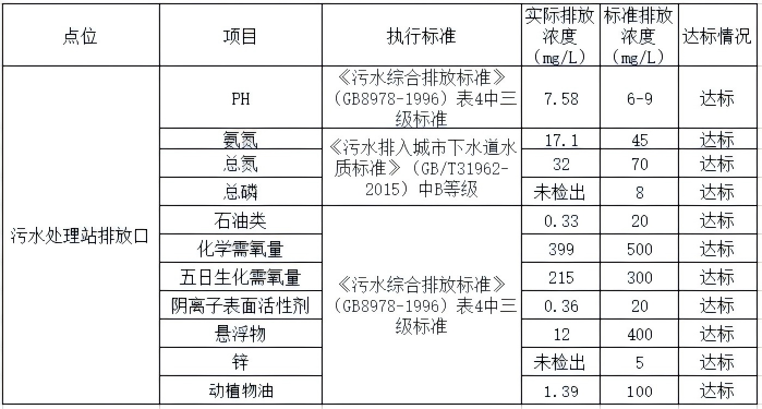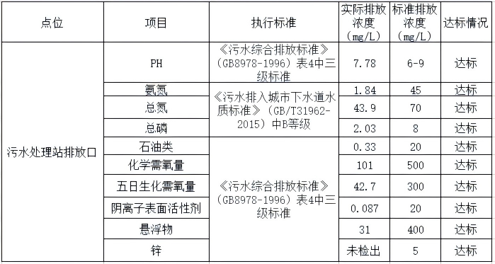 厂区生活污水经过化粪池后直接排入市政管网,执行《污水综合排放标准》(GB8978-1996)表4中三级排放标准、《污水排入城市下水道水质标准》(GB/T31962-2015)中B等级标准排放;生产废水排入厂区综合污水处理站,污水站采用物化工艺(酸碱中和+絮凝沉淀+高级氧化)的处理工艺,处理效果稳定,污染物去除率高,执行《污水综合排放标准》(GB8978-1996)表4中三级标准,《污水排入城市下水道水质标准》(GB/T31962-2015)中B等级标准,处理达标排入市政污水管网,进入荔城区污水处理厂处理。
