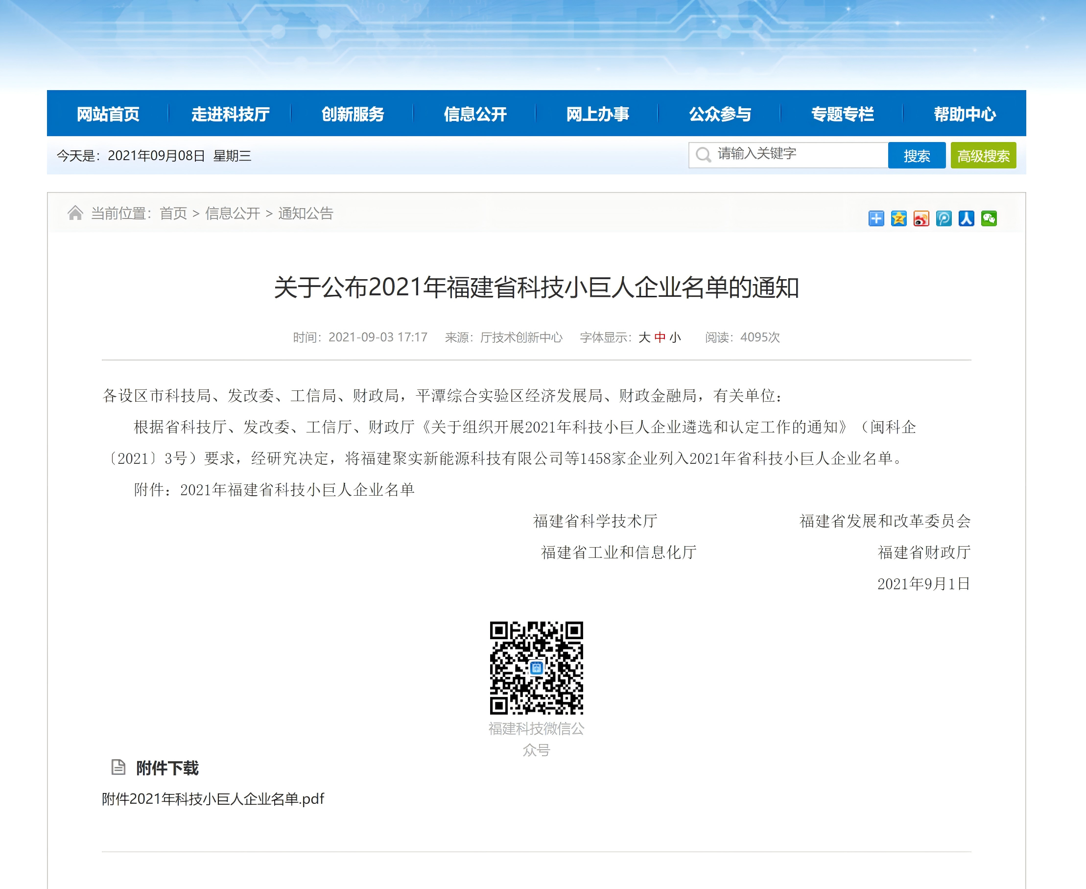 ag真人平台官方被列入“福建省科技小巨人企业”