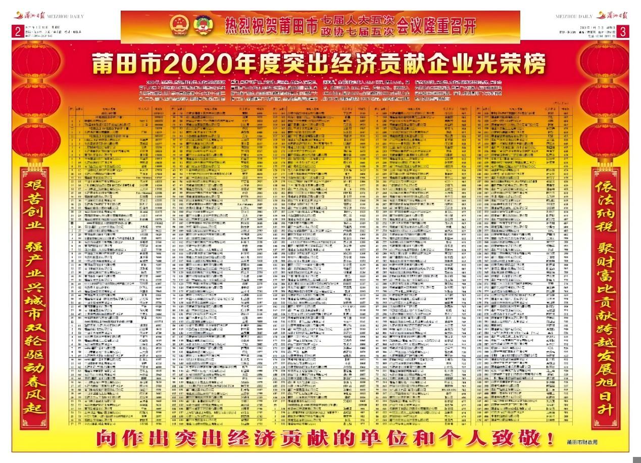 近日,莆田市召开了第七届人大五次及政协七届五次会议,会上对2020年度有突出经济贡献企业予以了通报表彰,福建ag真人平台官方新材料股份有限公司榜上有名,“湄洲日报”等媒体刊登了该项喜讯。