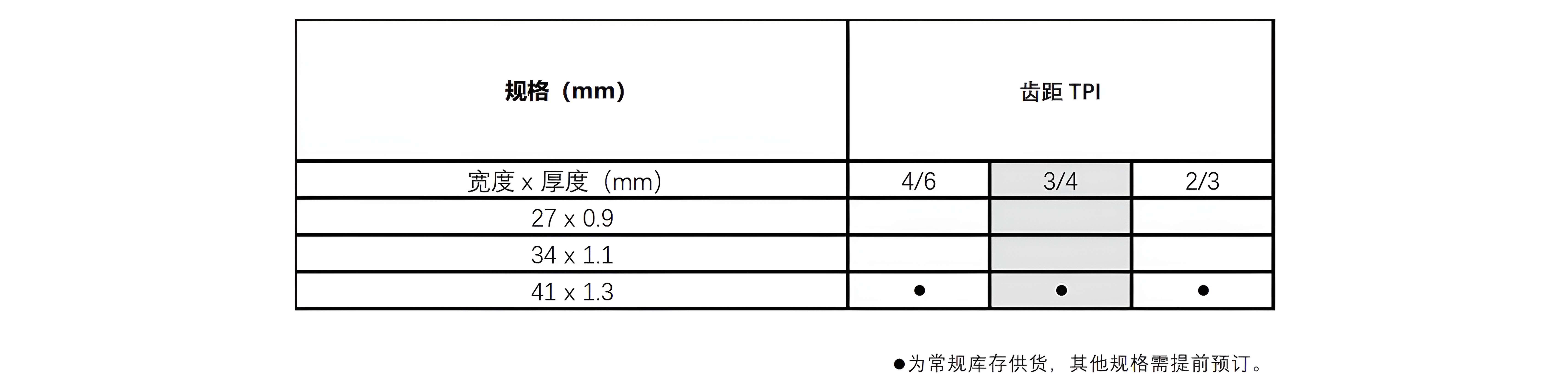 中等齿距的带锯条,应用于冲击大、硬度高的金属材料。